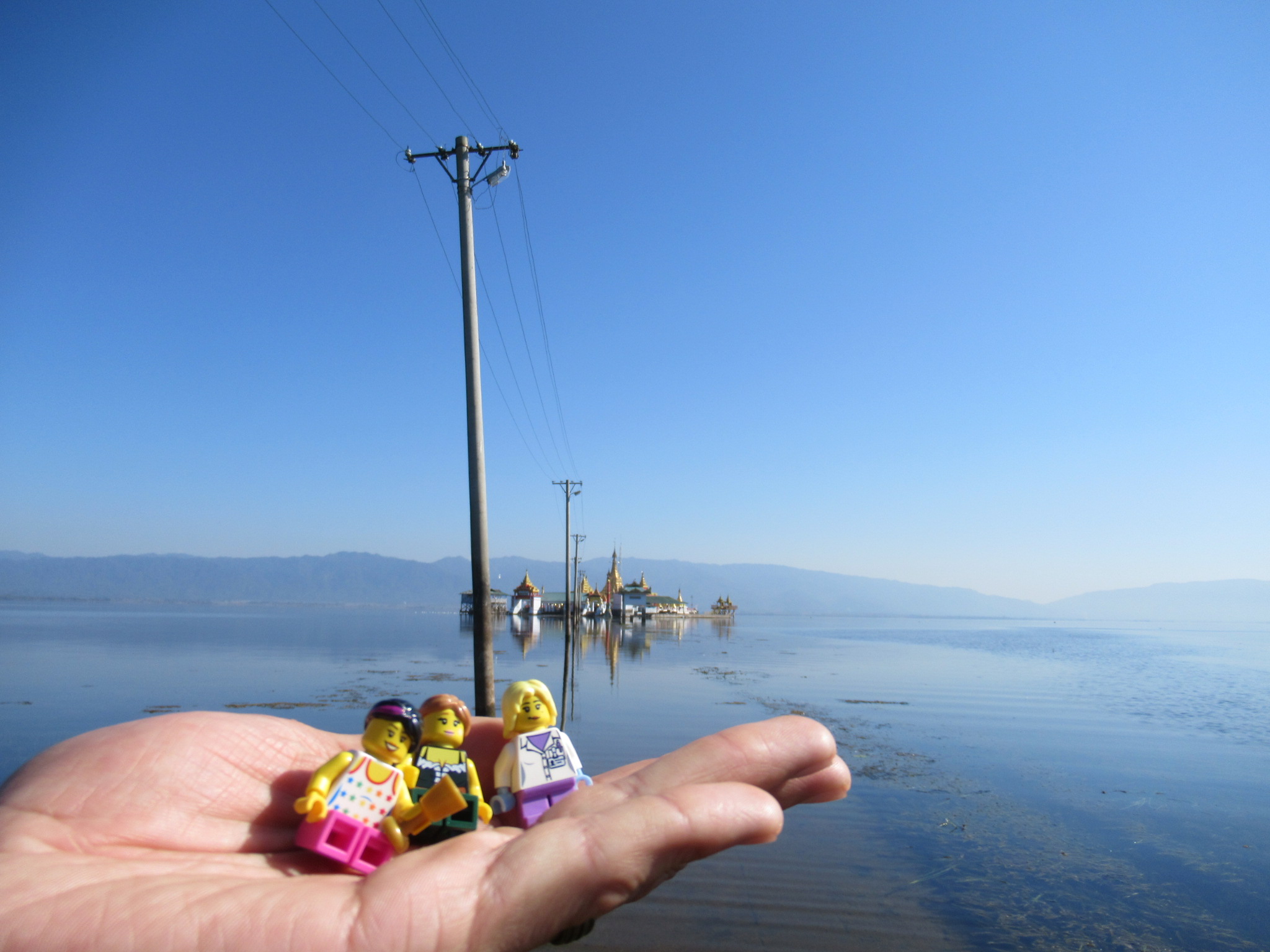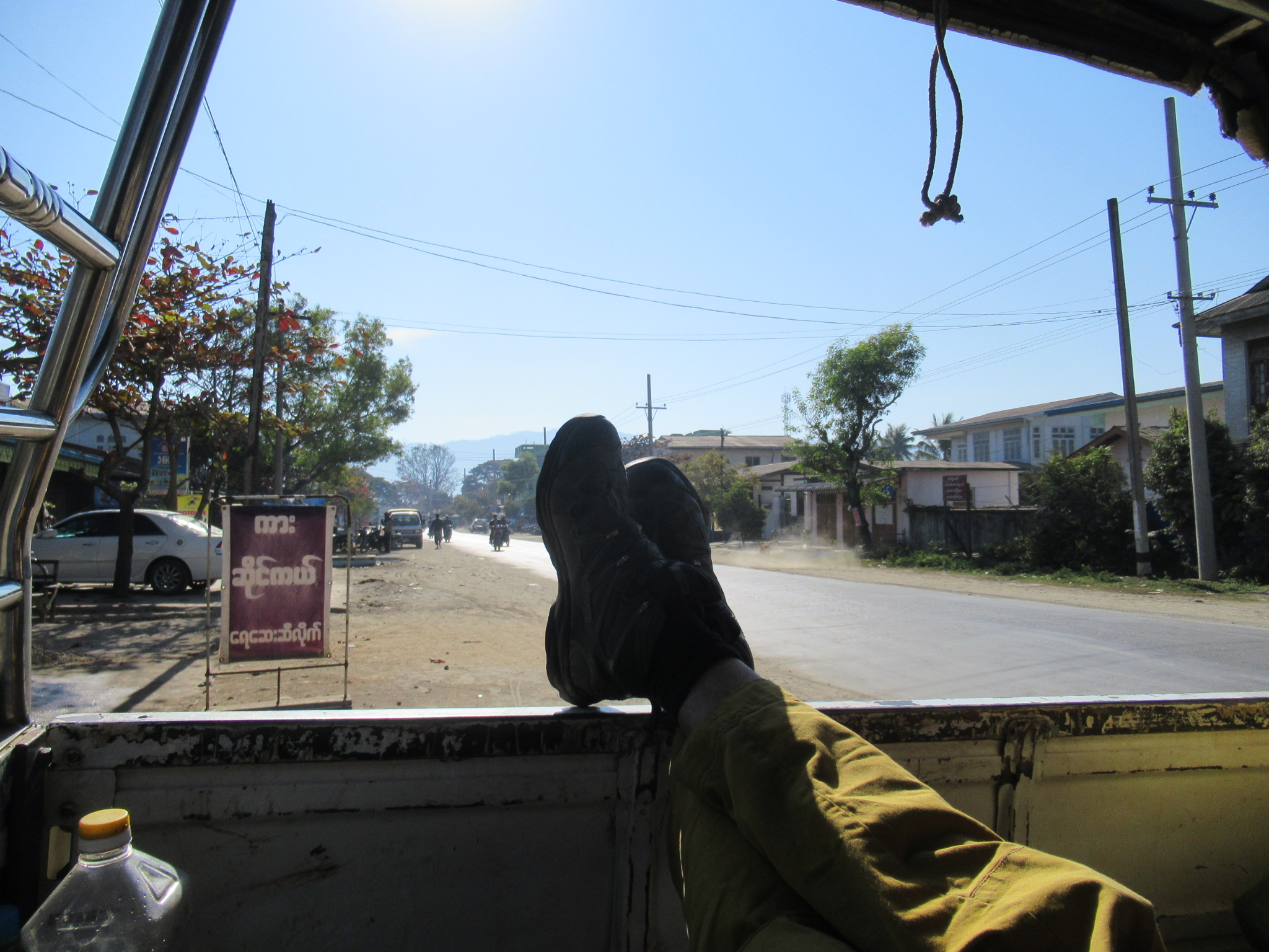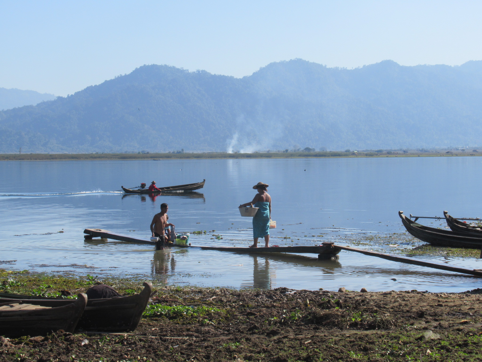 19h de trajet, nous voilà à Hopin. Une jeep nous amène en 1h30 à l’auberge à Lonton. Confort sommaire mais on est au bord du lac et c’est magnifique !!